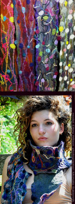 This class introduces students to the fun, unusual process of wet felting by making a thin, soft, flat felt fabric. The project may be used as a neck scarf, table runner or wall piece. Wet felting by-passes spinning and knitting (it's true! there's no knitting involved) and capitalizes on the natural attributes of animal hair fibers to bond together in the formation of a "non-woven" fabric.