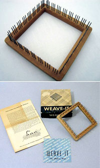 Looms come in all sizes and shapes. Weave-It Looms were first sold in the 1930’s and 40’s. They are a wonderful little loom! In this class you will make a pincushion or cell phone case by weaving several small squares on a Weave-It loom and then stitch the squares together.
